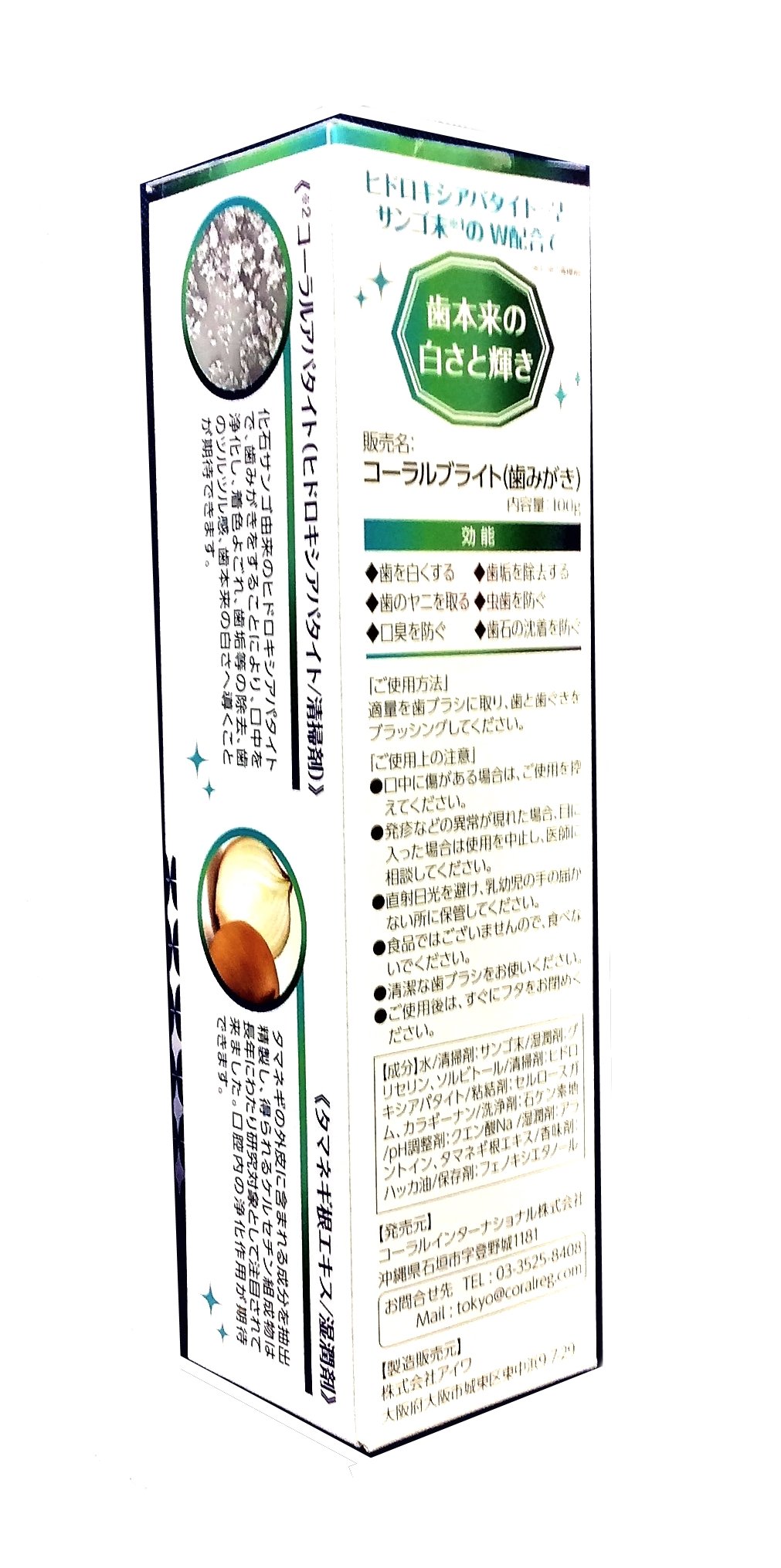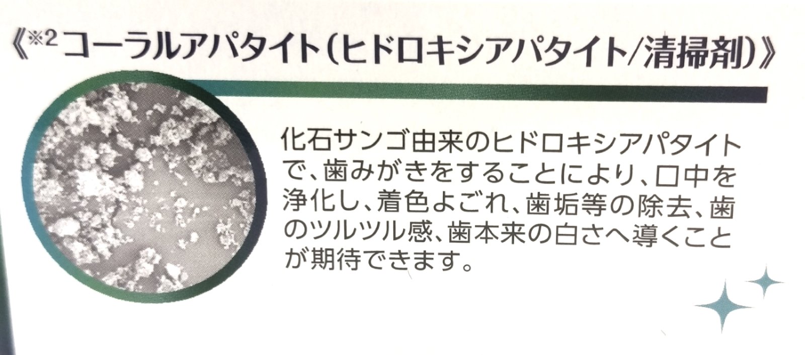 Brightening toothpaste with coral apatite.