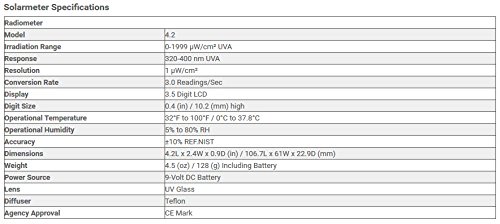 Solarmeter Model 4.2 Sensitive UVA Meter - Measures 320-400nm with range from 0-1999 µW/cm² UVA