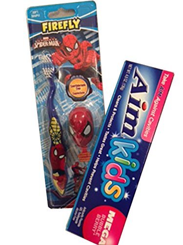 -. Title : Ultimate Spiderman Toothbrush, Protective Toothbrush Cap, and Aim Bubble-Berry Kids Toothpaste, Bundle of 3 Items