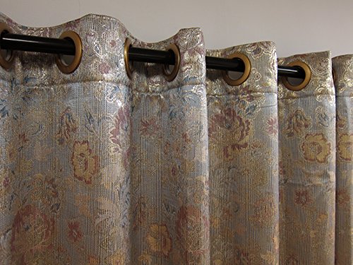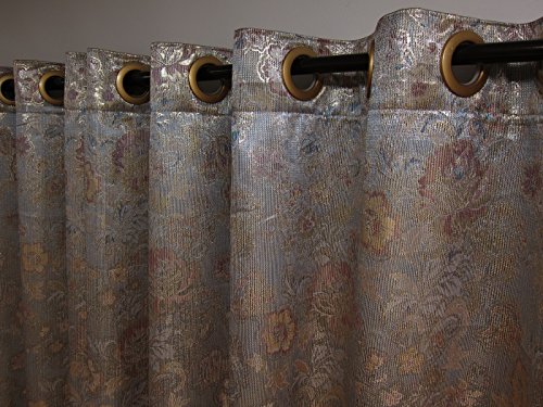 Cover your windows in luxury with this lovely 95 inch curtain Panel. With its elegant Metallic Blue Pink floral pattern, and luxurious Embroidered floral logo, this is a must have for adding a touch of class to your decor.Feature
