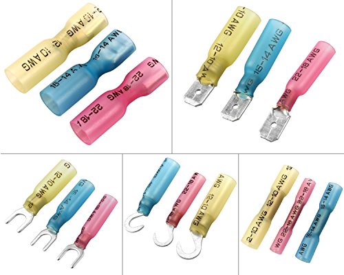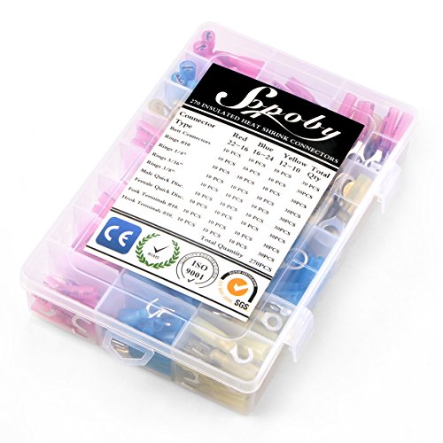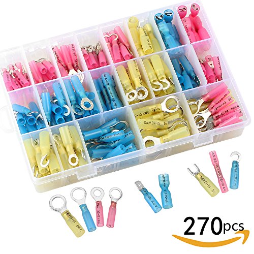 Sopoby 270pcs Heat Shrink Wire Connector Set, Insulated Waterproof Electrical Crimp Terminals, Marine Automotive Spade Ring Terminals Kit with Case