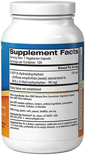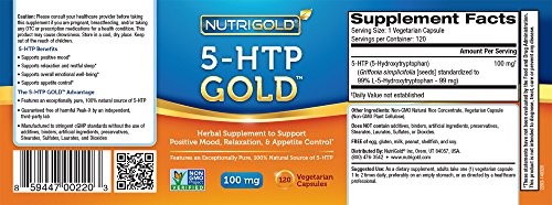 -. Title : 5-HTP 100mg, 120 Vegetarian Capsules - The GOLD Standard Pure 5-HTP Extract Guaranteed Free of Harmful Peak-X, GMOs, and Allergens
