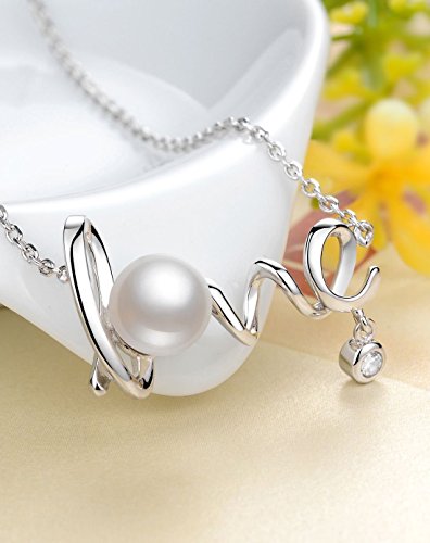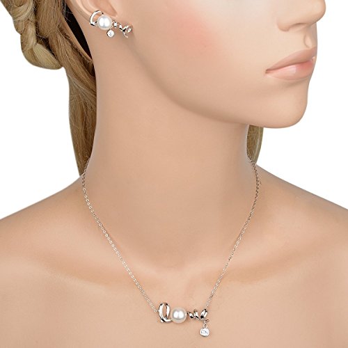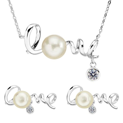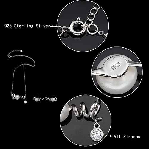 -. Title : EVER FAITH® 925 Sterling Silver CZ AAA Freshwater Cultured Pearl Sweet "Love" Necklace Stud Earrings Set