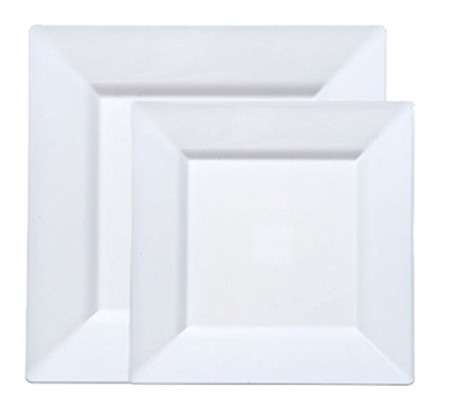 INCLUDES 20 - White Square Plastic Dinner Plates (10.75 Inches) & 20 - White Square Plastic Salad/Dessert Plates (8 Inches)