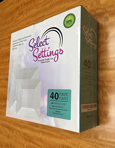 40 White Square Plastic Plates - Includes 20 Dinner Plates and 20 Salad Plates by Select Settings