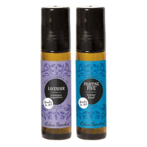 Lavender + Fighting Five Roll-On Value Pack 100% Pure Therapeutic Grade Essential Oil by Edens Garden- 2 Set 10 ml Roll Ons