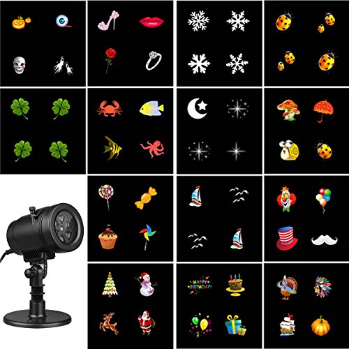 2017 Slide Show withProjection LED Lights-14 Switchable Slides, Auto Rotating, Gift for Christmas, Halloween, Holiday, Wall Motion Decoration
