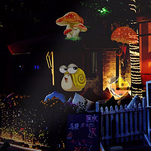 FIVE MODES + 14 SWITCHABLE SLIDES: Slow, medium, fast, fixed and off modes. Runs on an automatic 6-hours on and 18-hours off cycle. Timer reset in according with the time which it is turned on. 14 switchable slides (4 patterns per slide), Love, Summer, the Moon and stars, Snowflake, Ocean, Snail and mushroom, Ladybugs, Clovers, Candies and special holidays series of Thanksgiving Day, Carnival, Birthday, Christmas, Halloween.