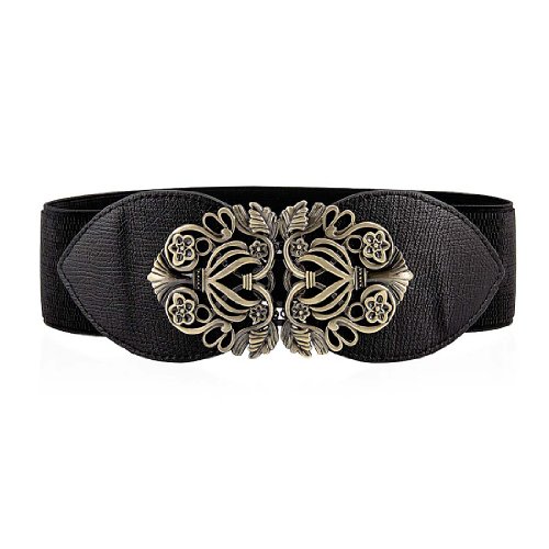 Black colored, wide band elastic fashion belt. Comes with a ornate floral designed, interlocking, belt buckle. Fabulous, and flattering, this is an accessory you will want to add to your wardrobe. *NOTE*: Due to differences between monitor displays, actual color may vary slightly from image. b.m.c is a registered trademark of Remi Collections LLC and is exclusively distributed by Bundle Monster. The b.m.c trademark is protected by US Trademark Law.