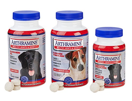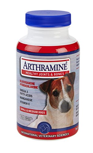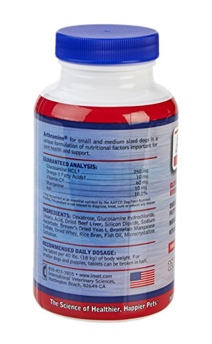 -. Binding : Misc. -. Brand : International Veterinary Sciences -. Department : Home > Pet Supplies -. EAN : 0094008010215 -. Feature : Builds and repairs connective tissue; reduces inflammation and pain / Increases pet mobility and desire for play / Protects pet from further cartilage breakdown / Suitable for Small/Medium dogs / Made in the USA -. IsAutographed : 0 -. IsMemorabilia : 0 -. Label : International Veterinary -. Manufacturer : International Veterinary -. Model : 01021 -. MPN : 01021 -. NumberOfItems : 1 -. PackageQuantity : 1 -. PartNumber : 01021 -. ProductGroup : Pet Products -. ProductTypeName : PET_SUPPLIES -. Publisher : International Veterinary -. Size : 120 Tablets -. Studio : International Veterinary -. Title : Arthramine Tablets Healthy Joints and Bones Supplement for Small / Medium Dogs, 120 count -. UPC : 094008010215 -. Warranty : N/A