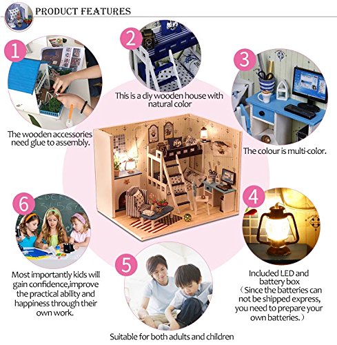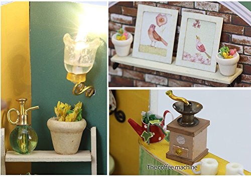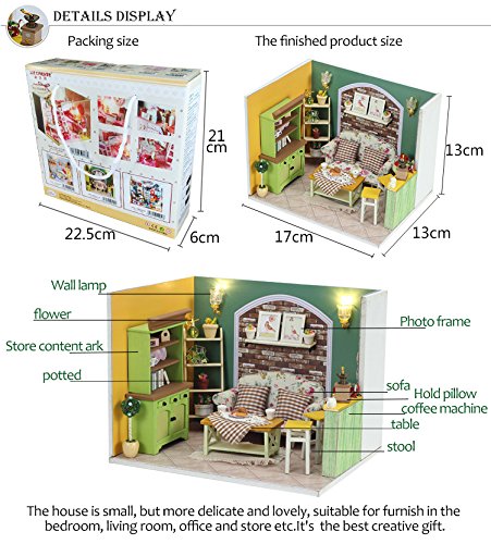 -. Feature : DIY DOLLHOUSE: All parts showed on the picture included, you can diy your own cute and elaborated dollhouse by change the position of furniture or add or remove other parts. / SWEET HOUSE: The house is small, but more delicate and lovely, suitable for furnish in the bedroom, living room, office and store etc. It's the best creative gift. / IDEAL GIFT: DIY the gifts show your more sincere love, these ornaments are made of wood, help kids learn how to mange furniture, and should be collected and the value stays or rise. / PARAMETER: Finished Size: 5.1 x 5.1 x 6.7 inch, Weight: About 660 gram, Material: Wood, English Instructions Manual Included. / ATTENTION: You should assemble this miniature yourself, the batteries and glue are not included due to the restricted transportation. Small parts, not safe for kids under 3 years old.