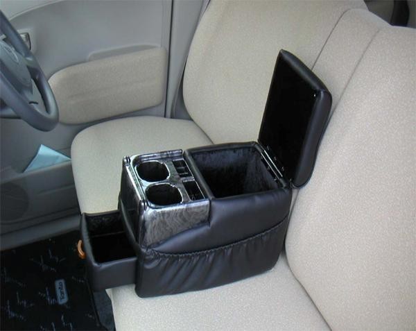 ベンチシートやセカンド・サードシートのアームレストに最適。豪華なフェイクレザーとウッド調のパネルを組み合わせたデザインです。テーブル付きです。