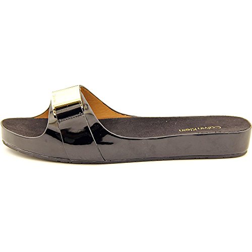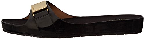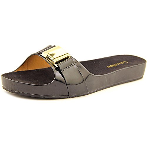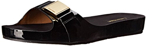 Product DescriptionComfortable footbed sandal with metal logo ornament and rich patent colors is the slide to own for spring.0