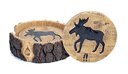 -. Brand : Cabin & Home -. Color : Multicolored -. EAN : 0726481997508 -. Feature : Cabin decor set of 4 coasters and holder set / Made of highly detailed polyresin with the look of tree bark and wood / Each coaster measures 3.25" across. The holder is 4.25" across and 1.5" tall. / Coasters and holder have pads on the bottom to protect surfaces. / Makes a great gift or home and cabin decor accent piece with lodge decor, bear decor and more. -. Label : Cabin & Home -. Manufacturer : Cabin & Home -. MPN : 9203 -. PartNumber : 9203 -. ProductGroup : Kitchen -. ProductTypeName : KITCHEN -. Publisher : Cabin & Home -. Studio : Cabin & Home -. Title : Moose Decor Wood and Log Look Coaster Set -. UPC : 726481997508