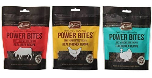 -. Title : Merrick Power Bites Grain Free Soft Training Treats 3 Flavor Variety Bundle: (1) Real Beef Recipe, (1) Real Chicken Recipe, & (1) Turducken Recipe, 6 Oz. Ea.