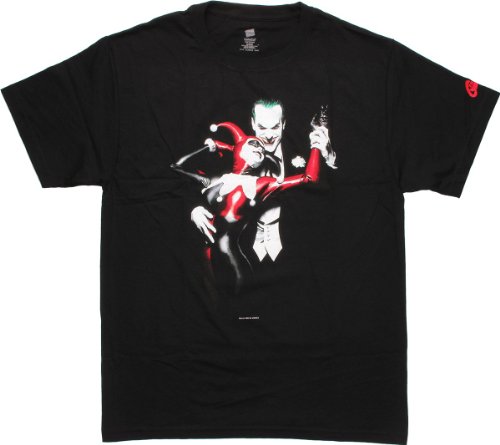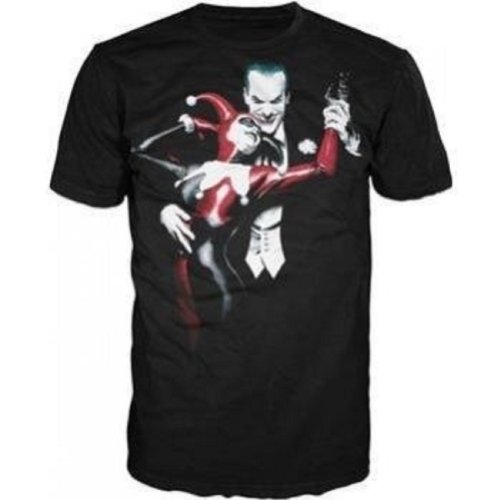 Product DescriptionThis Batman T-shirt features an image of the Joker and Harley on a black tee.0