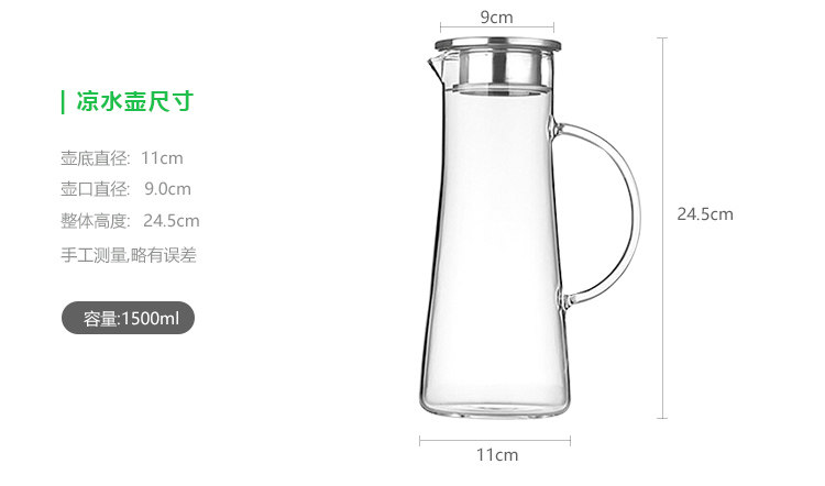 Cool kettle (large): 24.5cm high, spout diameter 9.0cm, diameter 11cm pot. Capacity: 1500ml
