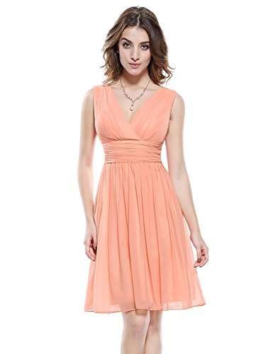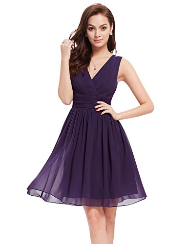 Double v-neck short party dress. Not padded. Unique ruched waist design creates an elegant silhouette. Concealed zipper up the back. Lining, no stretch. Lightweight and flowy,appropriate for many occasionsFeature