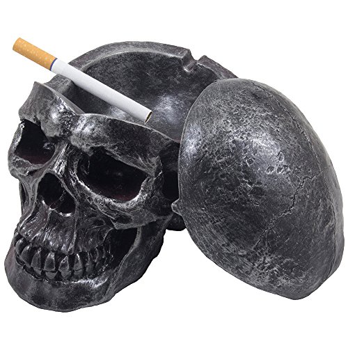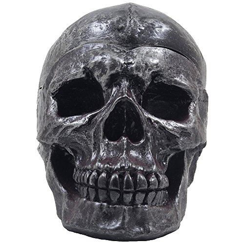 Spooky Human Skull Ashtray with Cover for Scary Halloween Decorations and Decorative Skulls & Skeletons Figurines As Gothic Smoking Room Decor Gifts for Smokers by Home-n-Gifts