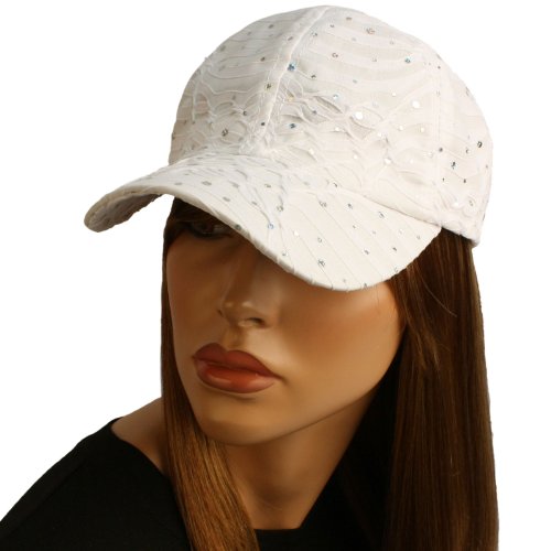 -. Title : Ladies Sparkle Shiny Flashy Dance Party Baseball Hat Ball Cap White Adjustable