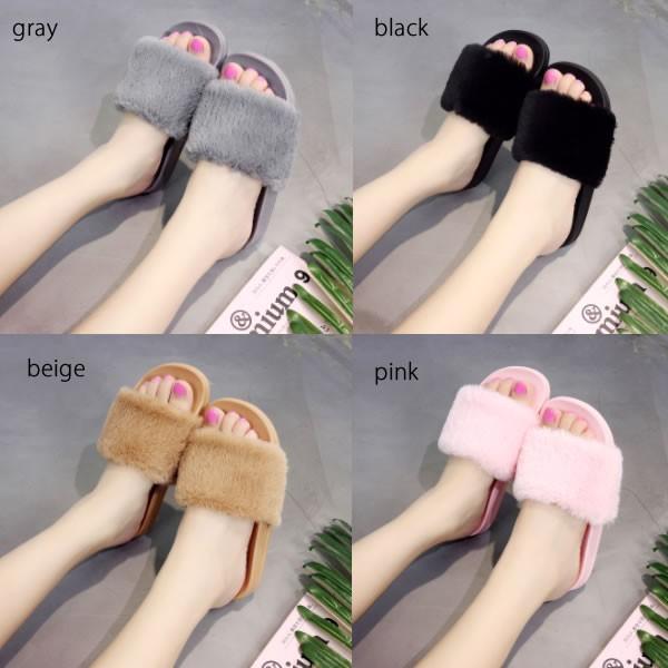 | 商品詳細 | サイズ 36 (23.0cm) 38 (24.0cm) 40 (25.0cm) カラー black gray pink beige 素材 フェイクファー ラバー ヒール つま先側 1cm かかと側 2cm |