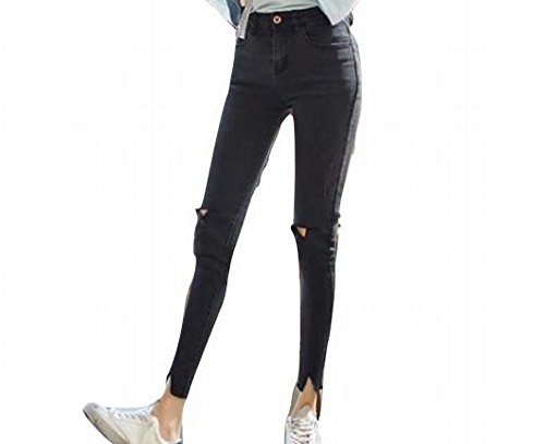 -. Title : 春夏 スリムジーンズ ダメージ加工 ストレッチ スキニーパンツ 9分丈 カットオフ 美脚