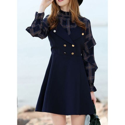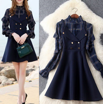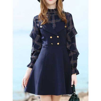 パーティードレス ミニ丈 ワンピース チェック柄 重ね着風 スタンドカラー ジャンパースカート ブラウス 上品 お呼ばれ デート drgz2573