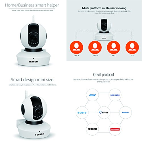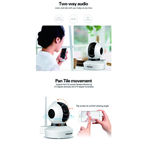 -. Title : SERHOM IP Camera WIFI 720P,Wireless Surveillance Camera,Network webcam,Two way Audio Microphone inside,Onekey WIFI Setting,Pan/Tilt Movement,Night Vision Baby Pet Video Monitor
