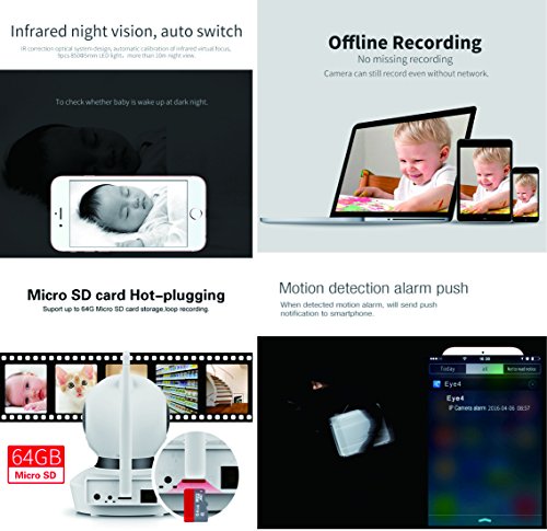 -. Feature : EASY TO SETTING: One key wifi configuration to setting the WIFI camera connecting to you IOS/Android smart phone or windows PC. The camera offer audio guidance during whole WIFI setting, it is very simple and fast,after setting finished, you can control the camera via our APP in your smart phone or PC,build your own Surveillance System by using our freely app fastly. / Great Vision: High resolution of HD720P offer clear and exquisite video/image. Remote Pan/Tilt up to Pan 280 degrees (Horizontal) and Tilt 80 degrees (Vertical) and 4X digital zoom provide a super wide view. Night vision allows you viewing and recording video even in complete darkness. You can save the video record in camera TF card(up to 128G) supported or your phone/PC side. It is convenience for you to managing all recording. / AUDIO APPLICATION: Two way audio allows you hear and talk with your friend or family without extra audio equipment.You can taking to your friend and family face to face via this camera in any distance and any time. / MOTION DETECTION: The camera will detect the motion against the sensitivity level setting in APP.You will get informed via mail,snapshots or video records,audio alert by setting in APP.You also can create your own surveillance plan for different time periods.The night vision function allow the camera working in 24hours,even in complete darkness. / APP'S EXPANSION: You will find more function of SERHOM camera via our APP,We will update more function in APPs and welcome to share your experience of our products in order to help us improving. Please reset your camera via reseting button when you move it into another wifi area.The standard pack we sold not include memory card. Kindly read the User Manual in package before use.We will provide full 1-Year Warranty and Lifetime Support.