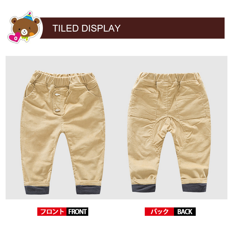 90 ズボン着丈51 ウェスト44 ヒップ66100 ズボン着丈56 ウェスト44 ヒップ68110 ズボン着丈62 ウェスト46 ヒップ74120 ズボン着丈66 ウェスト48 ヒップ76130 ズボン着丈70 ウェスト48 ヒップ78単位:cm※上記サイズは平置き実寸になります。サイズ表の実寸法は商品によって1-3cm程度の誤差がある場合がございます。