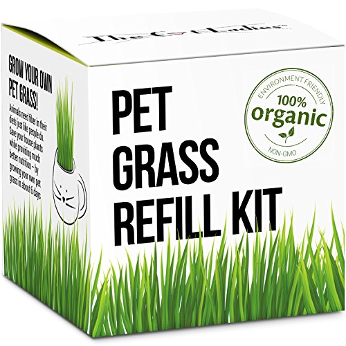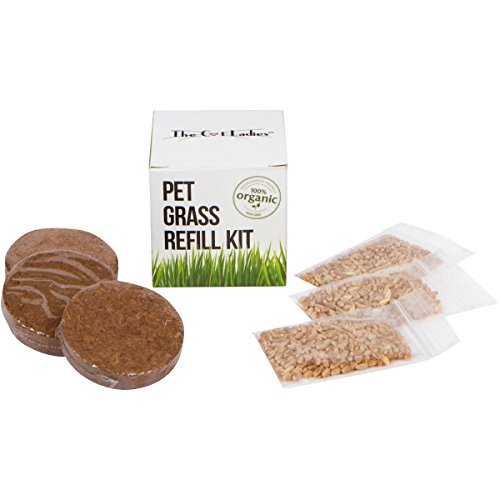 -. Feature : CAT GRASS/PET GRASS REFILL KIT - 3 PACK: You will receive 3 complete pet grass refills which includes 3 packages of organic seed mix, 3 packages of organic planting soil medium and simple, easy to follow instructions. For use with item #B01I5XHWI6 and B01JNI9W9E: 100% Organic pet grass kit/cat grass kit with cat grass planter. Natural hairball control and hairball remedy for cats. / OUR PET GRASS IS A CERTIFIED ORGANIC BLEND OF WHEAT, OATS, RYE, BARLEY AND FLAX: Our special NON GMO formula cat grass is loved by cats, dogs, rabbits, guinea pigs, and reptiles like turtles and iguanas. Naturally reduces hairballs and provides an important source of carbohydrates and vitamins A, B, C, E and K. as well as essential minerals and nutrients like Calcium, Chlorophyll (a natural breath freshener), Iron, Lecithin, Magnesium, and Pantothenic Acid. / SIMPLE AND EASY TO GROW: Grow amazing Organic Pet Grass in about 4 days. / WE CARE ABOUT THE WAY WE DO BUSINESS: Our customers love us because our customers and earth friendly manufacturing is very important to us. Using our strict selection process we ensure you get NON GMO, Organic cat grass seeds and soil refills - see what our customers say! We want you to love our high quality pet grass refill so we offer a satisfaction guarantee. If you are not completely satisfied with your refill just send us an email and we will refund 100% of the money. / NATURAL HAIRBALL CONTROL AND HAIRBALL REMEDY FOR CATS: Much like mother's milk, the juices in cat grass contain FOLIC ACID. Folic Acid assists in the production of hemoglobin, this protein moves oxygen in the blood. This is an essential vitamin in a cat's bodily function and acts as a digestive aid. FIBER - A high-fiber diet can help prevent the formation of hairballs. Cat grass provides an organic renewable resource of enjoyment and fiber for your cat. (and may save a trip to the veterinarian).