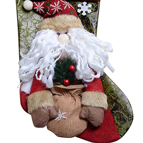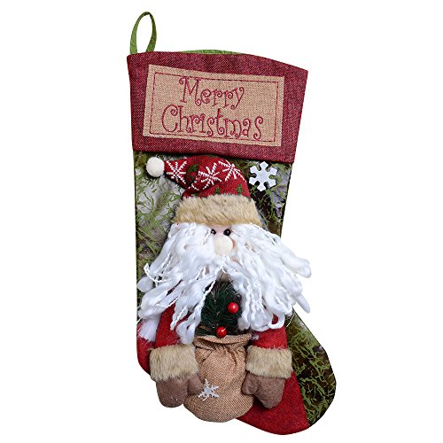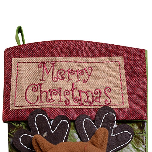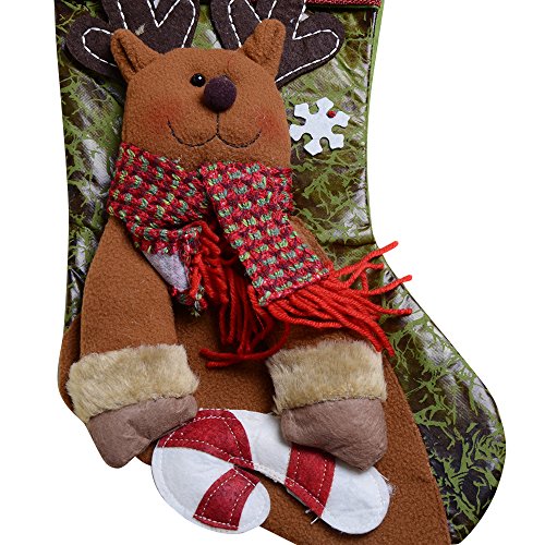 QBSM Classic Cute Deer Christmas Stockings Decorations Stocking Holders Gift Bag Xmas Character 3D Plush Linen Hanging Tag Set of 3 Santa, Snowman and Deer 19 inch