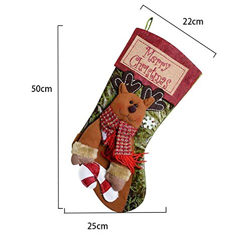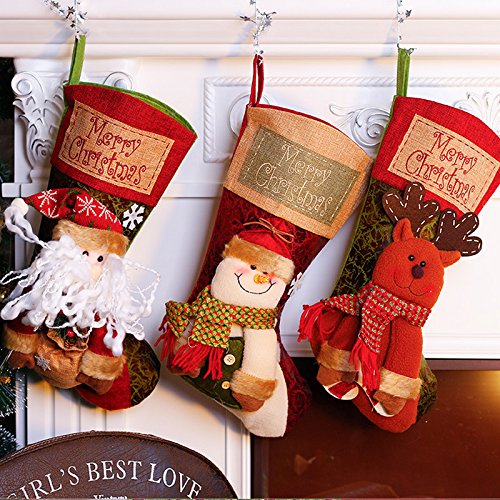 This decoration Christmas stockings set includes 3 cute styles Santa, Snowman and Christmas Deer