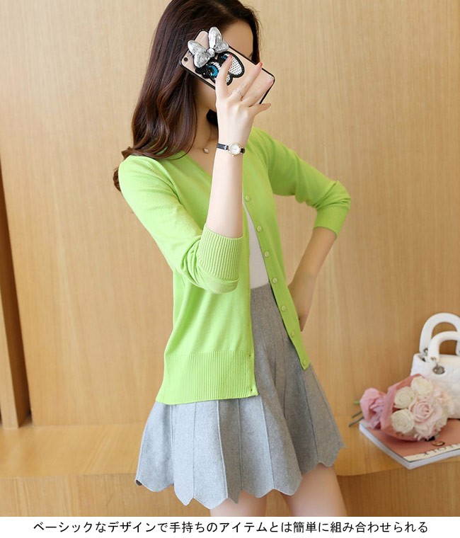 ニットカーディガン レディース 薄手 カーディガン Vネック 長袖 ボタン付き アウター 女性用 ボレロ 春秋物 夏物 クーラー対策 カラバリレディース用のニットカーディガンが登場薄手生地で季節転換の時期にピッタリ、室内のクーラー対策にも最適ボタン付きの仕様でとても機能性アップベーシックなデザインで手持ちのアイテムとは簡単に組み合わせられるスッキリとしたパンツコーデにもキュートなスカートコーデにも似合う甘めの色から落ち着きのある色まで、雰囲気異なる8色展開でファッションをより自由に楽しめるカラー:1 2 3 4 5 6 7 8素材 ポリエステルサイズ(cm) S M LS 着丈54 肩幅35 バスト90M 着丈55 肩幅36 バスト92L 着丈56 肩幅37 バスト94ご注意:※サイズは平置きサイズです。素人採寸ですので、若干の誤差がございます、ご了承ください。