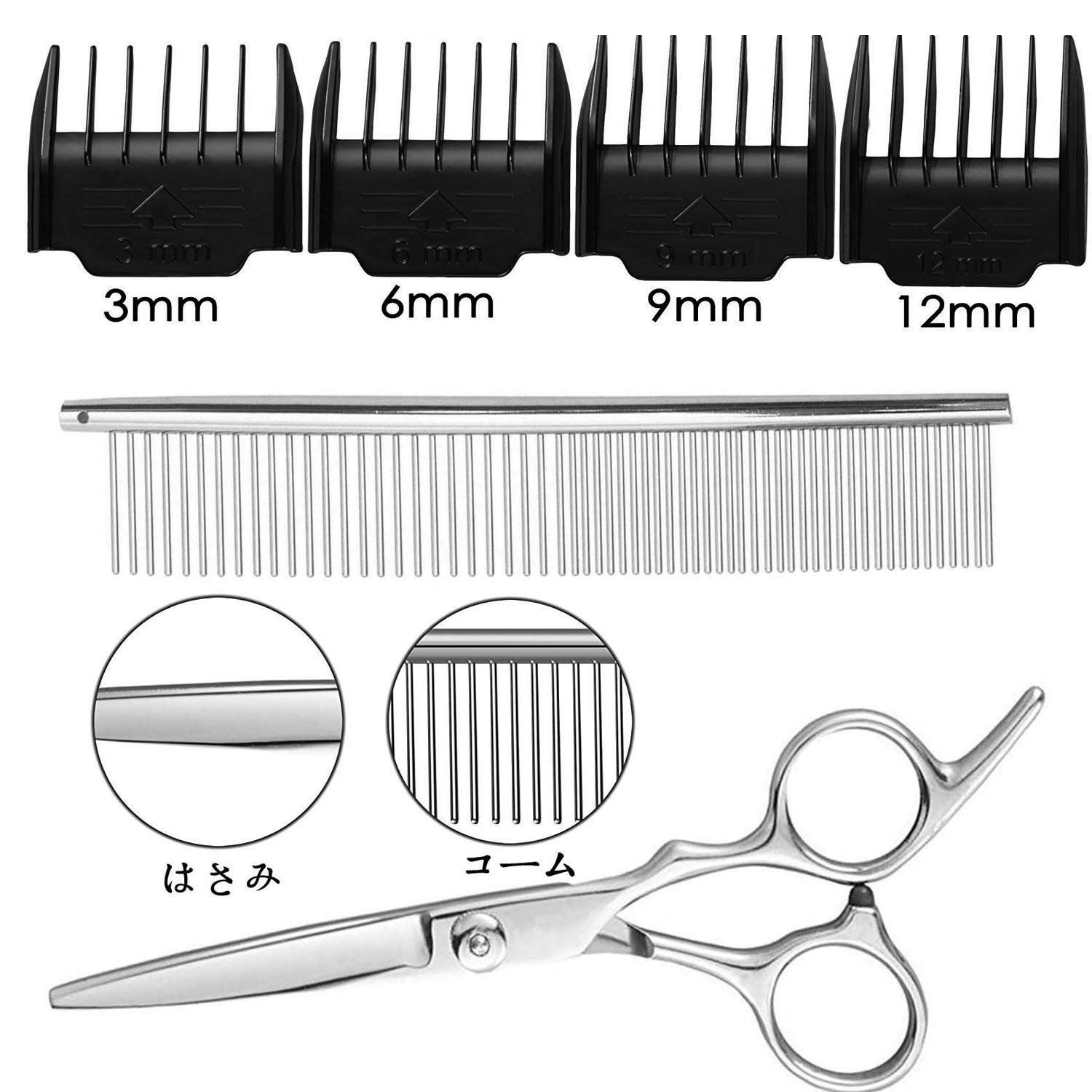 【全身カット】: バリカン本体切り替え(0.8mm/1.1mm/1.4mm/1.7mm/2.0mm)が可能で繊細なカットもできて、アタッチメント(3・6・9・12mm) 4個つきで細かな長さの調整が可能です。刈りすぎないように、胴体や首回り、足など楽に長さを揃えることができて、自由に刈り長さ調整できるペット用品、猫バリカン。ペットの皮膚を傷つける心配がなく安全カットできるセルフカットバリカンです。ご自宅でご自身の手でカットすると、トリミング代は結構節約できます。