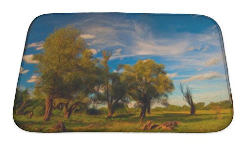 Gear New No Slip Microfiber Memory Foam Landscape Painting Showing Forest Trees & The Meadow on Sunny Summer Day Bath Rug Mat, 24" X 17"