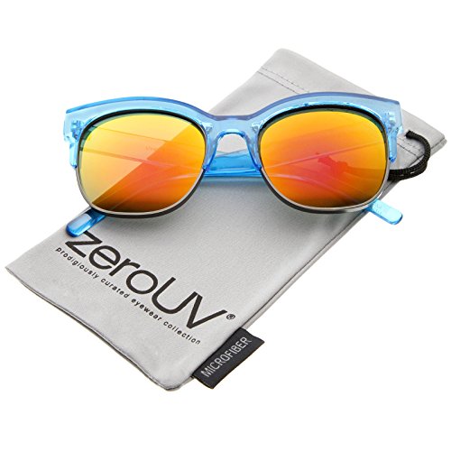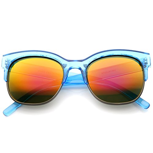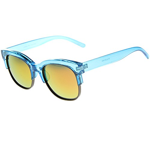 zeroUV - Bold Colorful Half-Frame Two-Toned Inset Mirrored Lens Horn Rimmed Sunglasses