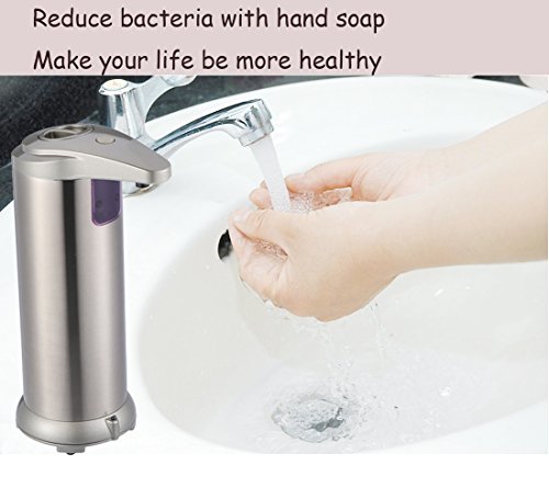 ☞ QUICK REACTION -- The sink soap dispenser is designed with advanced infrared ray human body reaction technology to automatically make reaction when your hand is close to the sensor range. No need to touch Soap Dispenser again, just put your hand under the sensor without wasting hand times. The Smart Soap Dispenser will keep you and your family away from bacteria and keep your family safe and healthy