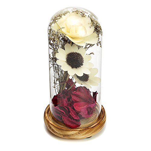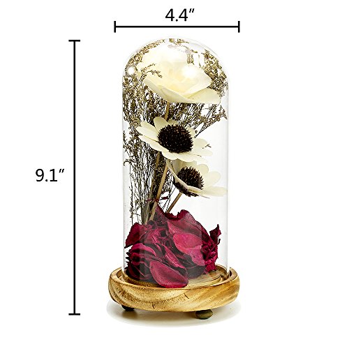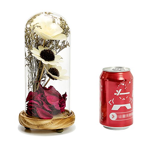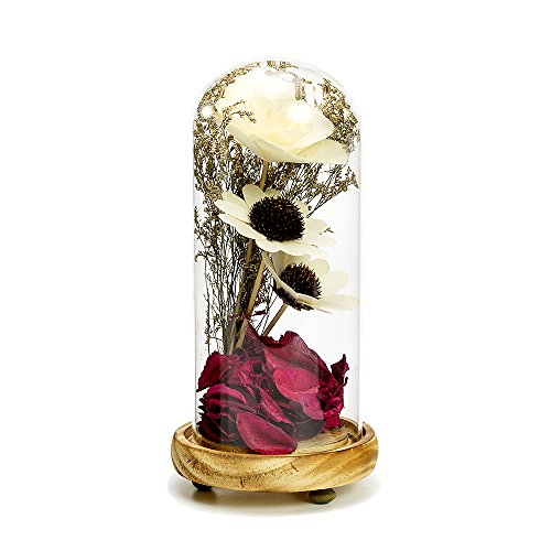 - MODERN DESIGN: Modern Style artificial dried flower bouquet,fake rose petals with arrangement in cloche crystal glass dome with a removable wooden base