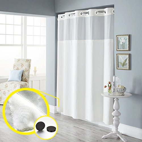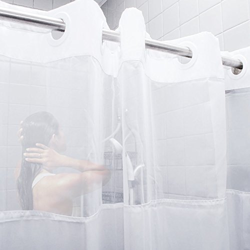 Elegant White Upscale Design --- Clean white color with 12" sheer voile makes super elegant and modern look. Other look alike shower curtain hooks look tacky, but with the sleek design of this hookless shower curtain, your bathroom will look upscale and clean cut.