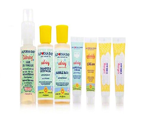 -. Feature : Eases tired tempers and calms little bodies / Great for travel, sleepovers or as an introduction to California Baby / Includes shampoo, conditioner and bath toy for a soothing nighttime bath / Sunscreen, moisturizing cream and calendula for fun in the sun / All-natural ingredients won't irritate baby's delicate skin