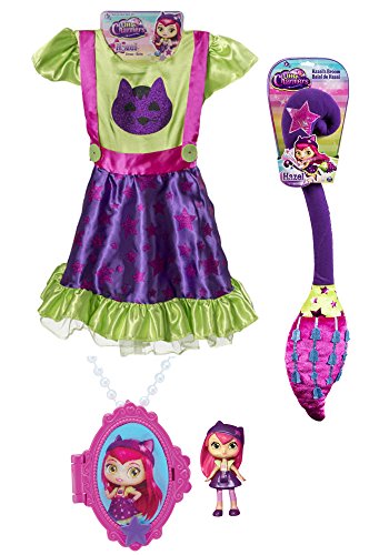 -. Brand : Nickelodeon -. Color : Purple, Green, Hot Pink -. Department : girls -. Feature : Little Charmers Hazel Dress is fun for girl's dress up, magic pretend play or a Halloween costume / Hazel's Magic Flying Broom & Locket complete the whole costume! / Fits Size 4-6 for Little Girls / Hazel's Locket comes with a Charmers Hazel doll that fits inside the locket. / Use the ensemble for a Halloween costume dress! -. Label : Spin Master -. Manufacturer : Spin Master -. ProductGroup : Apparel -. ProductTypeName : CHILDRENS_COSTUME -. Publisher : Spin Master -. Size : 4-6 -. Studio : Spin Master -. Title : Little Charmers Toy Costume - Hazel's Dress, Locket & Magic Flying Broom -. UPC : 638455128620