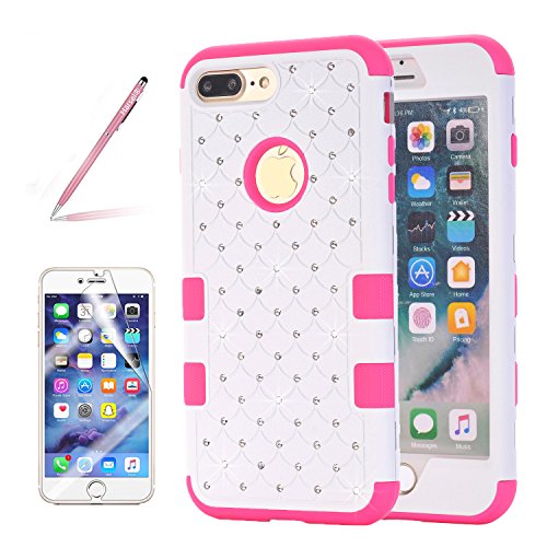 -. Feature : 100% brand new and with screen protector and stylus pen! / Double layers combine into one; made with a High Quality shatter-proof hard plastic shell with rhinestone diamond bling and a soft flexible TPU skin for the maximum protection you can give your phone. / Precisely cut openings to allow full access to all the functions of your phone. / Good quality and unique design, provide your phone with full body military grade protection. / Compatible With Apple iPhone 7 Plus only, Fits All Carriers ( AT&T, Verizon, SP.R.Int, T-Mobile, Unlocked, etc.)