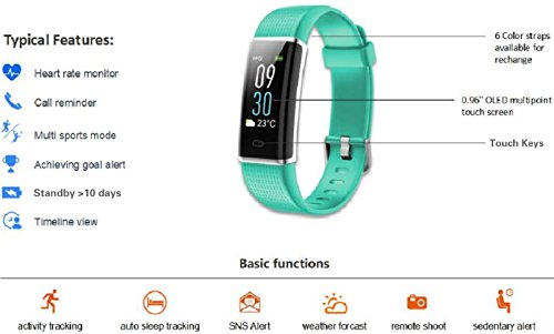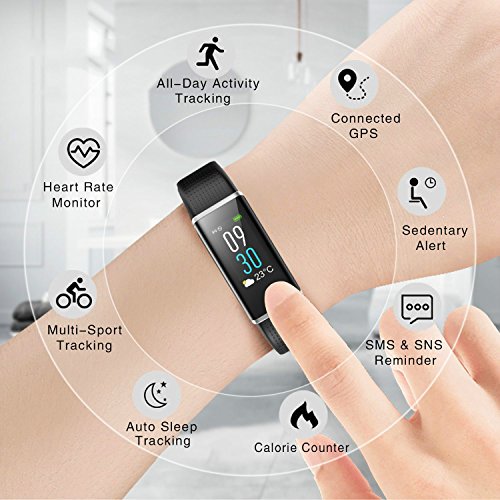 -. Feature : 【IP67 WaterProof Colorful Screen Wristband】Curved Color Screen extends your vision and experience, Strong Water Resistence helps you swim and shower freely within 2 hours and 2 meter depth. / 【Excellent Weather Display Activity Tracker】The Fitness Tracker with high quality and accuracy tracks your data wherever and whenever, specially design to be your Sleep Monitor, Step Counter, GPS, Sports, Built-in Continuous Heart Rate Monitor, Weather Temperature Display, Calories Track etc Sports Mode. / 【Smart Message Notification】Via the high speed steady Bluetooth 4.0 Connaction, The Fitness Tracker will remind you all messages such as Calls, SMS, Twitter, Instagram and Facebook etc, you won't miss anything. What's more, The Smart Watch can control camera and vibration reminders alarm mode, Convenient to your daily life. / 【Compatibility】Only compatible with smartphone systems iOS 7.1 or above and Android 4.4 or above. / 【Built-in USB Charger & APP Support】Single Charge will provide you more 10 days' working time, Built-in USB plug makes it easy to charge with any USB block and computer; Recommend to download apps"VeryFitPro" for a longterm data record and Tracker Function Expansion.