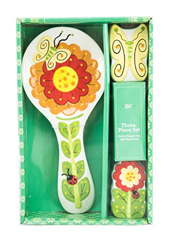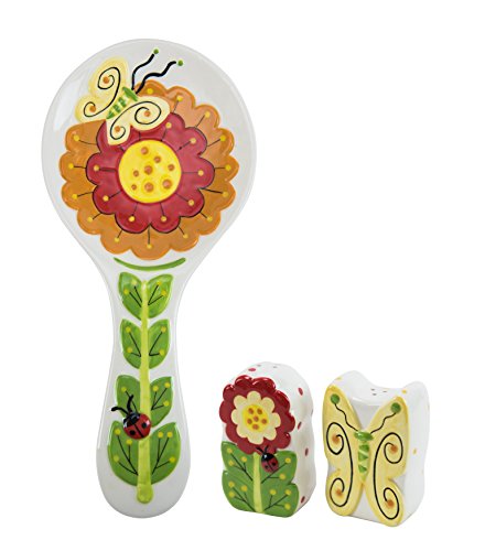 Boston Warehouse Flower Salt and Pepper Set with Spoonrest