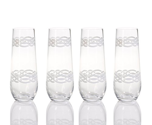 Flute Champagne Glass, Nautical Braided Rope Design (Set of 4)