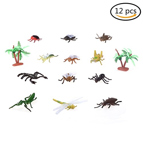 -. Title : CoscosX 12 Pcs Assorted Colors Plastic Model Insects for Kids Education Trick Assorted Animal Playsets