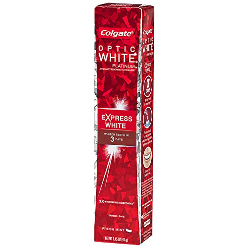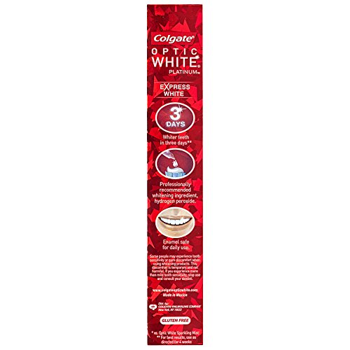 Colgate Optic White PLATINUM Express White Toothpaste is a revolutionary product in the Optic White collection. This breakthrough formula gives users whiter teeth in just three days just by brushing (for best results, use as directed for 4 weeks) . The toothpaste contains 2x more of the whitening ingredient, Hydrogen Peroxide (Vs Optic White Sparkling Mint). Having a radiant and polished look is quick and easy with Colgate Optic White PLATINUM Express White.Feature