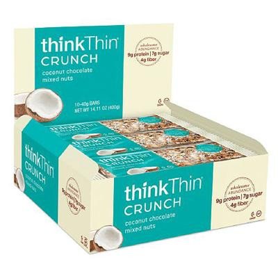 -. Title : Think Products - Think Products thinkThin Crunch Bar - Crunch Coconut Chocolate Mixed Nuts - 1.41 oz - Case of 10