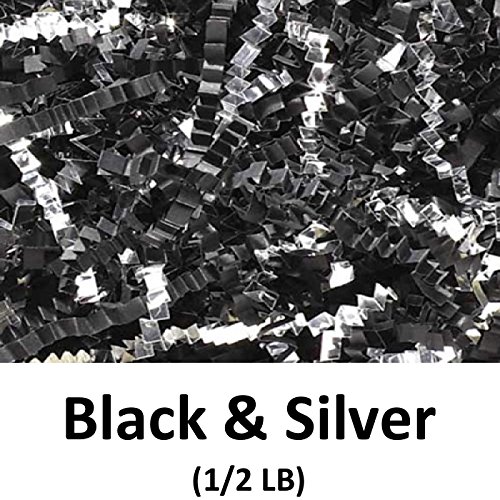 (MagicWater Supply)/Stationery Party Supplies/Gift Wrapping Supplies/DIRECT FROM USA/Crinkle Cut Paper Shred Filler (1/2 LB) for Gift Wrapping Basket Filling - Black Silver | M...